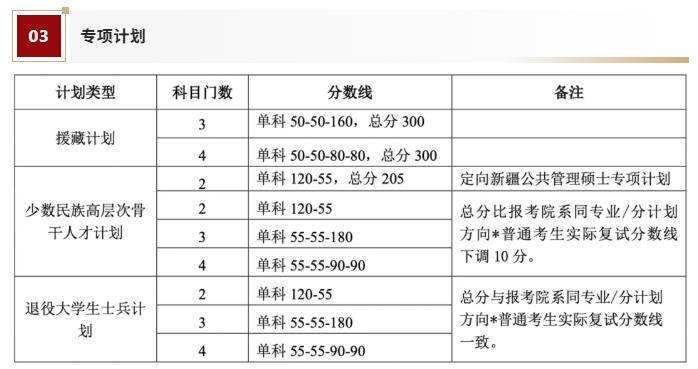 注*:按研究方向分計劃招生的,總分要求以考生報考的研究方向普通考生實際復試分數線為參照基準。