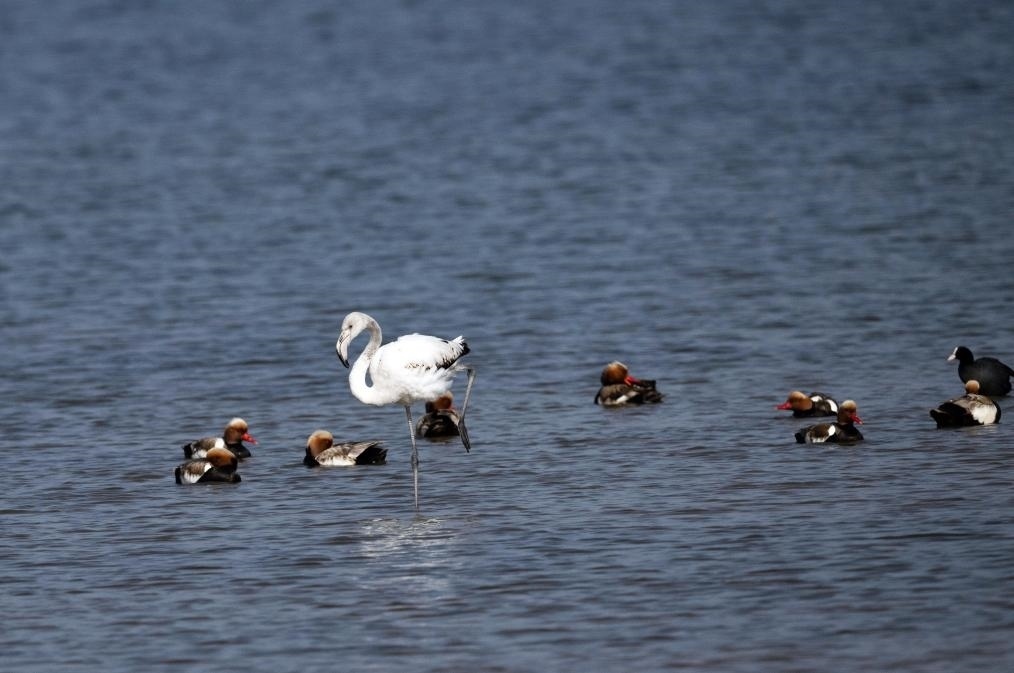 大紅鸛又稱大火烈鳥,主要生活在鹽水、淡水棲息地,喜歡結群生活,主要分布于熱帶、亞熱帶地區(qū),已被列入國家保護的有益的或者有重要經(jīng)濟、科學研究價值的陸生野生動物名錄。陳峰說:“大紅鸛在烏梁素海屬于‘迷鳥’,實屬罕見。我們已安排專人在湖區(qū)周邊實行重點巡查,防止人類活動干擾大紅鸛的棲息,給它營造出適宜、安全的棲息環(huán)境?!?/p>