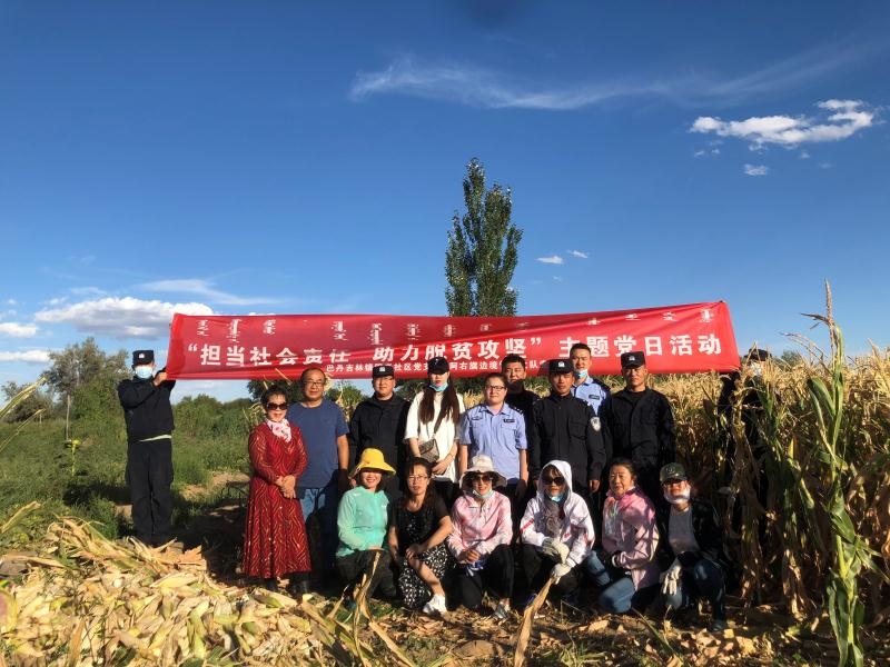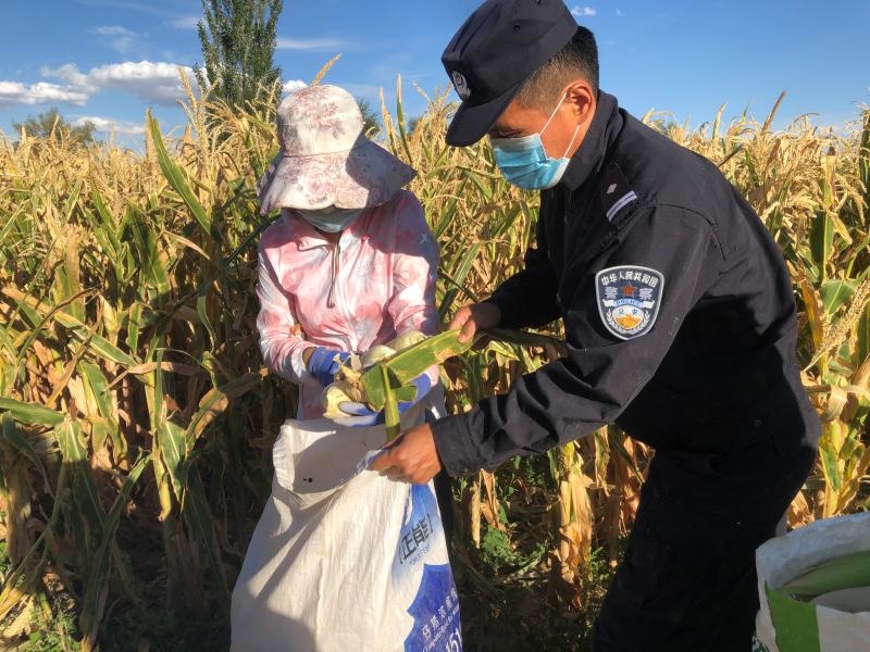 金秋時節(jié),大地金黃,碩果飄香,民警們頭頂烈日,揮舞鐮刀,有條不紊地收割著玉米,田間地頭中到處洋溢著爽朗的笑聲、彌漫著豐收的喜悅。這是在內(nèi)蒙古阿拉善右旗巴丹吉林鎮(zhèn)阿日毛道嘎查的莊稼地里,阿拉善邊境管理支隊的民警幫助群眾秋收的景象。