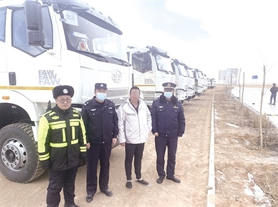 12月14日,阿拉善右旗公安局查干通格公安檢查站民警在戈壁路上,查處偽造超限運(yùn)輸車(chē)輛通行證的重型貨車(chē)17臺(tái)。