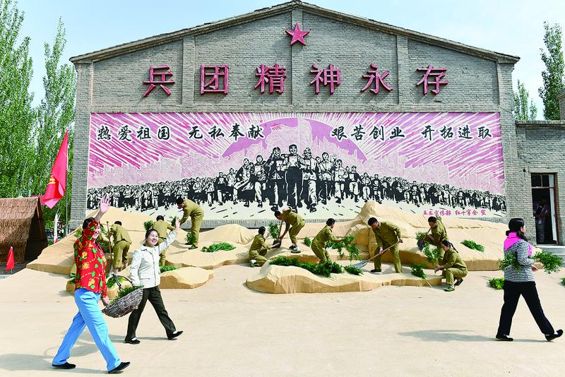 活動(dòng)在歡迎兵團(tuán)戰(zhàn)士的沉浸式演藝場(chǎng)景中開始。“大有作為”農(nóng)事體驗(yàn)、“苦中作樂”兵團(tuán)大鍋飯?bào)w驗(yàn)等,讓活動(dòng)參與者們“穿越”到兵團(tuán)歲月。歌手科爾沁夫演唱了本屆藝術(shù)季主題曲《來(lái)到了磴口你就不想走》,將現(xiàn)場(chǎng)氣氛推向高潮。
