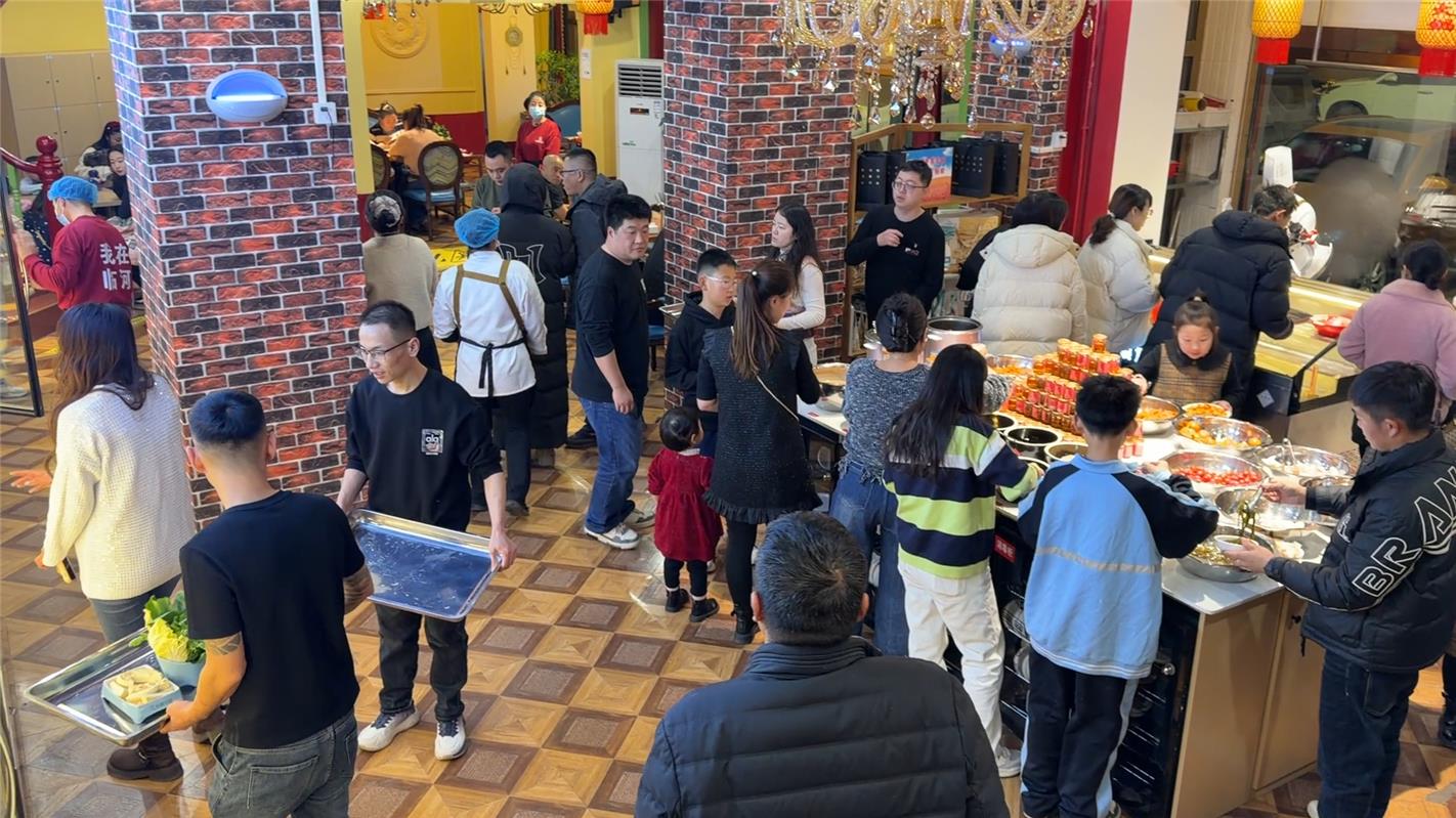 春節(jié)期間,大家對火鍋店的熱情不減。賴甜放心不下生意,便將妻子和孩子都接來巴彥淖爾一起過年?!斑@個決定沒錯,妻子和孩子也對這里的春節(jié)特別滿意,都想在這里多玩幾天?!辟囂鹦χf。