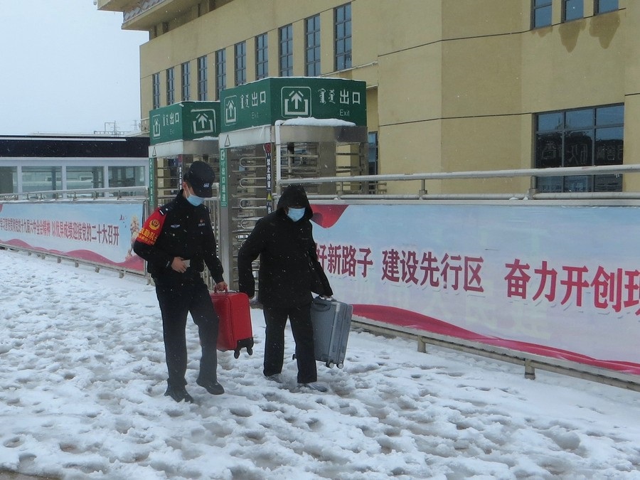 東勝東車站派出所以雪為令,迅速啟動應急預案,積極采取有效措施,解決安全發(fā)送旅客、線路安全暢通等問題,切實保障旅客群眾生命安全和鐵路運輸生產安全。(王鵬)