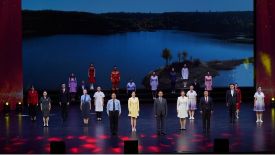 當(dāng)天,舞蹈《火種》拉開(kāi)了詩(shī)歌誦讀會(huì)的序幕。本次詩(shī)歌朗誦會(huì)從“紅色記憶”“信仰相隨”“奮進(jìn)新程”三個(gè)篇章依次展開(kāi),共14個(gè)紅色主題作品。表演者用心感悟、用情演繹,或鏗鏘有力、或婉轉(zhuǎn)悠揚(yáng)、或慷慨激昂,以集體誦讀、個(gè)人誦讀、情景劇表演等不同風(fēng)格、不同表現(xiàn)形式,將《我是一艘船》《紅色家書(shū)》《重逢》《黨啊,我的母親》《英雄》《信念永恒》《我們從哪里來(lái)—鄂前旗的紅色記憶》《我如果贊你》《奮進(jìn)有我》等紅色經(jīng)典篇章盡情呈現(xiàn)。一篇篇紅色經(jīng)典作品,表達(dá)著對(duì)中國(guó)共產(chǎn)黨百年來(lái)帶領(lǐng)中國(guó)人民艱苦奮斗、與時(shí)俱進(jìn)、奮斗追夢(mèng)的偉大實(shí)踐的贊頌,處處展現(xiàn)了鄂托克前旗廣大黨員干部群眾昂揚(yáng)奮進(jìn)的精神風(fēng)貌。