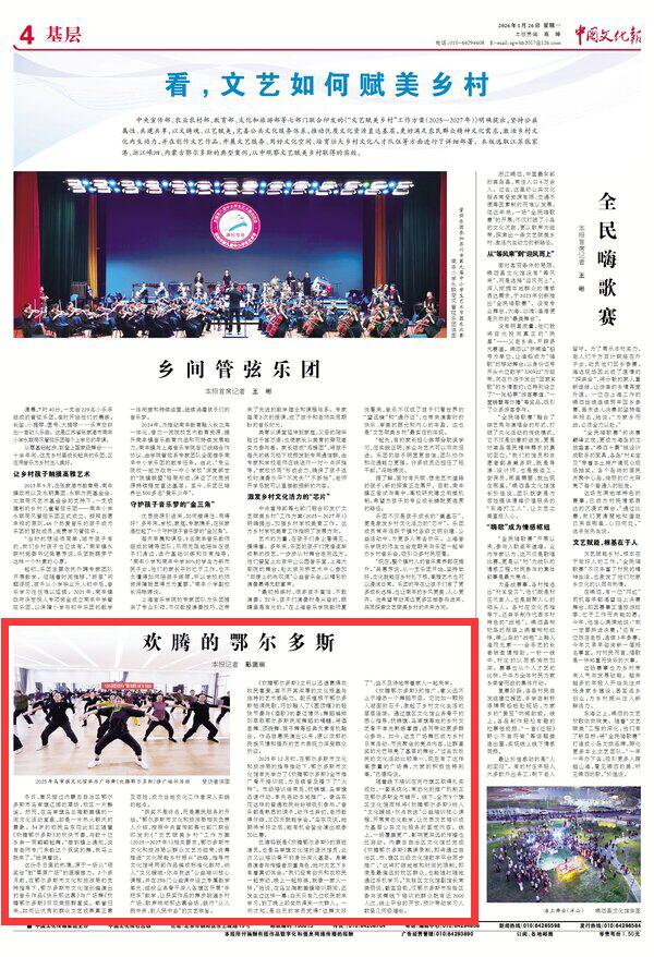 2026年1月26日《中國文化報》第4版刊發(fā)了《歡騰的鄂爾多斯》的文章,報道了廣場舞《歡騰鄂爾多斯》已成為鄉(xiāng)村日常活動、節(jié)慶聚會的亮點內(nèi)容,讓群星獎的光芒照亮了基層的舞臺。作品自惠民演出以來,便以濃郁的民族風情和強烈的藝術(shù)表現(xiàn)力深受群眾歡迎。