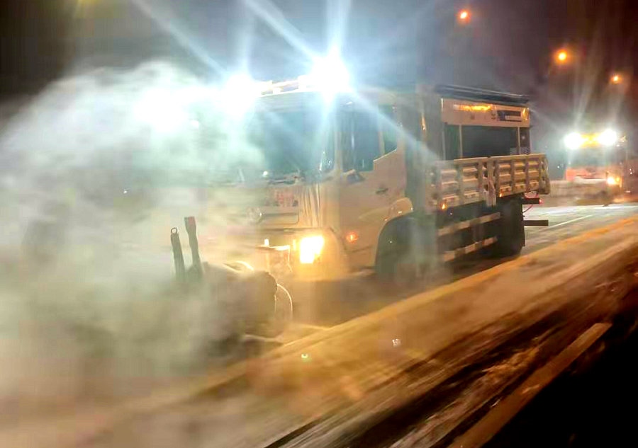 北疆新聞網(wǎng)、北疆新聞客戶端消息(記者 劉嬙)12月5日晚,內(nèi)蒙古自治區(qū)首府呼和浩特出現(xiàn)降雪天氣。為防止道路積雪結(jié)冰,保障廣大市民和車輛出行安全,呼和浩特市和各區(qū)兩級環(huán)衛(wèi)部門以雪為令,聞雪而動,按照清雪工作預(yù)案,分工明確,責(zé)任到人,機械和人工清雪緊密配合,第一時間在市區(qū)道路實施機械及人工清雪作業(yè),全面清理道路積雪結(jié)冰,確保高標(biāo)準、高質(zhì)量、高效率地完成清雪任務(wù)。