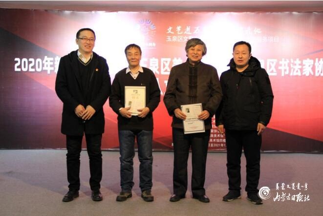 本網(wǎng)訊(內(nèi)蒙古日?qǐng)?bào)社融媒體記者 吳鈺)12月27日,由呼和浩特市文學(xué)藝術(shù)界聯(lián)合會(huì)主辦,中共玉泉區(qū)委宣傳部、玉泉區(qū)文學(xué)藝術(shù)界聯(lián)合會(huì)、玉泉區(qū)美術(shù)家協(xié)會(huì)、玉泉區(qū)書(shū)法家協(xié)會(huì)承辦,呼和浩特民族美術(shù)館協(xié)辦的“2020年玉泉區(qū)美術(shù)家協(xié)會(huì)、玉泉區(qū)書(shū)法家協(xié)會(huì)會(huì)員入會(huì)暨加入文藝志愿服務(wù)作品展”在呼和浩特民族美術(shù)館四樓舉行。