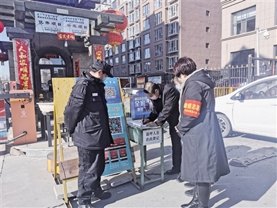 記者跟隨工作人員來到轄區(qū)地新街坊小區(qū),幾名社區(qū)工作人員正在小區(qū)門口負(fù)責(zé)疫情防控,“您好!請問您去哪棟樓?請下車登記信息。謝謝!”“請居民佩戴好口罩”……針對出入小區(qū)的人員,社區(qū)工作人員都一一仔細(xì)核查,宣傳防疫信息?!按汗?jié)長假過后,很多事都堆到今天了,所以格外忙?!卑⒗票甭飞鐓^(qū)黨總支書記王海瓊說,阿拉善北路社區(qū)很多網(wǎng)格員都放棄了與家人團(tuán)聚的時(shí)間,主動(dòng)下沉到各個(gè)小區(qū)開展疫情防控工作,實(shí)行24小時(shí)輪崗制,做好外地返呼人員登記和掃碼工作,保證轄區(qū)防控安全。除此之外,還積極參與禁燃煙花爆竹、垃圾分類宣傳等工作,讓政策落到實(shí)處。
