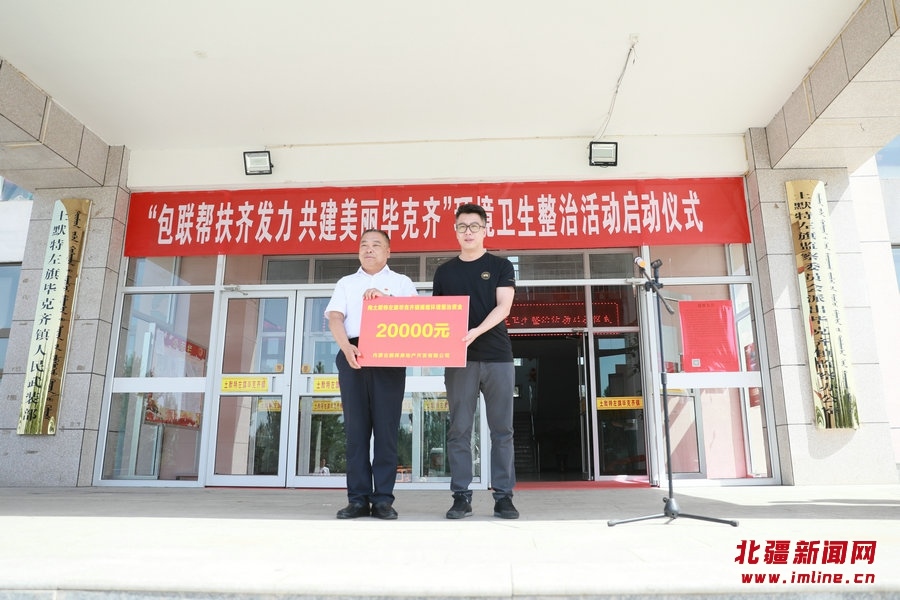 活動現(xiàn)場,呼和浩特市外事辦、呼和浩特市退役軍人服務(wù)中心、呼和浩特市養(yǎng)老服務(wù)中心、呼和浩特市城環(huán)環(huán)衛(wèi)產(chǎn)業(yè)發(fā)展(集團)有限公司、內(nèi)蒙古鵬輝房地產(chǎn)等5家單位,向包聯(lián)幫扶單位捐贈了價值3萬元的分類垃圾桶和2萬元環(huán)境整治資金。