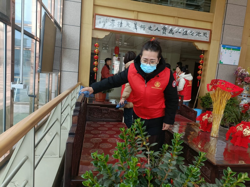 志愿者為敬老院義診、剪發(fā)、心理輔導(dǎo)、打掃房間等活動。