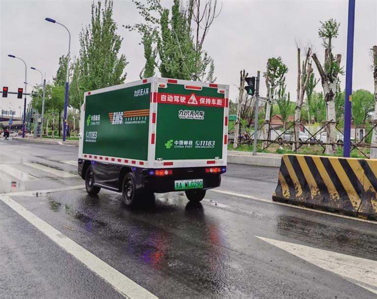 打開專屬App,掃碼開啟車廂,放入快件,關車廂,發(fā)送指令,無人快遞車上路了。這是記者5月9日在呼和浩特市郵政分公司(以下簡稱“公司”)寄遞事業(yè)部直投中心看到的一幕。