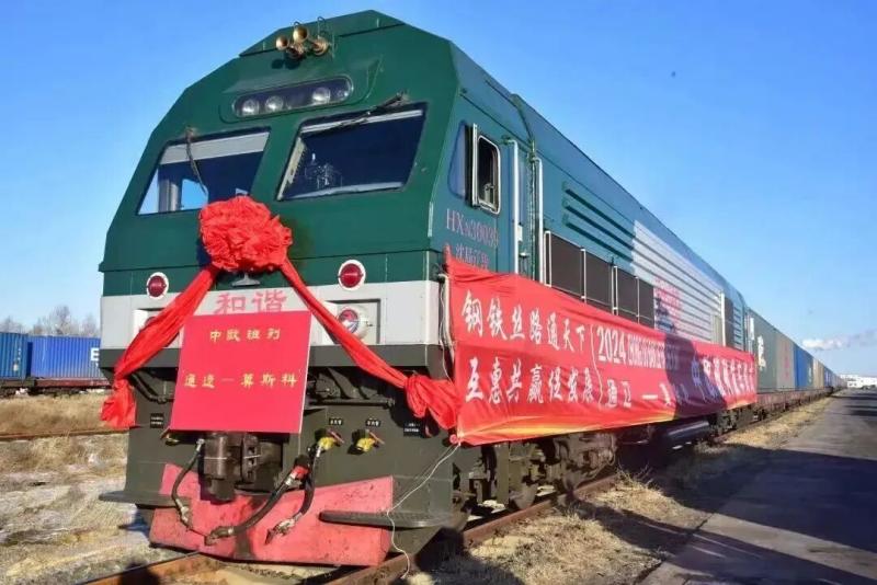 滿載55個(gè)集裝箱貨物的中歐班列從通遼駛向莫斯科。圖片來源通遼市融媒體中心微信公眾號(hào)