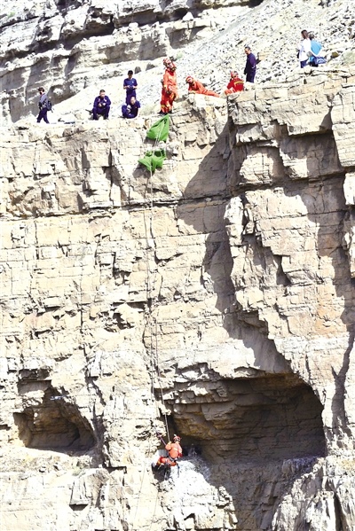 當天7時左右,在烏海市海勃灣區(qū)甘德爾山景區(qū)半山腰處,攝影愛好者焦長青在拍攝時發(fā)現(xiàn)了一窩出生20多天的幼年野生黑鸛,其中一只黑鸛行動異常,疑似受傷。他立即撥打了119報警電話,同時聯(lián)系了烏海市野生動物保護部門。9時許,烏海市消防支援支隊光明路特勤站和烏海市野生動物保護部門的工作人員到達現(xiàn)場。經(jīng)勘查,在距離懸崖正下方大約30米處的巖洞內(nèi),一只幼年黑鸛被尼龍繩纏繞住腿部而受傷,不能行動。消防員隨后尋找合適的位置制作錨點。消防員陳意攜帶救援裝備速降到懸崖下方展開營救,一個小時之后,受傷的幼年黑鸛被成功救出,并送往海勃灣區(qū)林業(yè)草原局救助站進行救治。