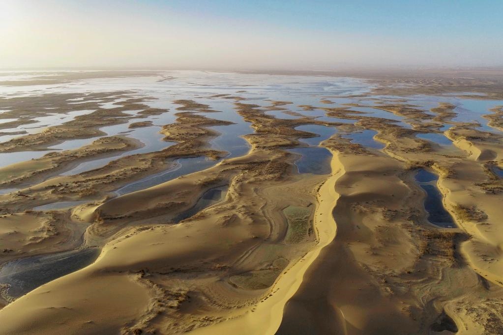 烏海湖由黃河海勃灣水利樞紐蓄水形成,總面積約118平方公里,湖水西接烏蘭布和沙漠,形成眾多各具特色、千姿百態(tài)的沙島,呈現(xiàn)出半湖碧水半湖沙的美麗景色。新華社發(fā)(王正 攝)