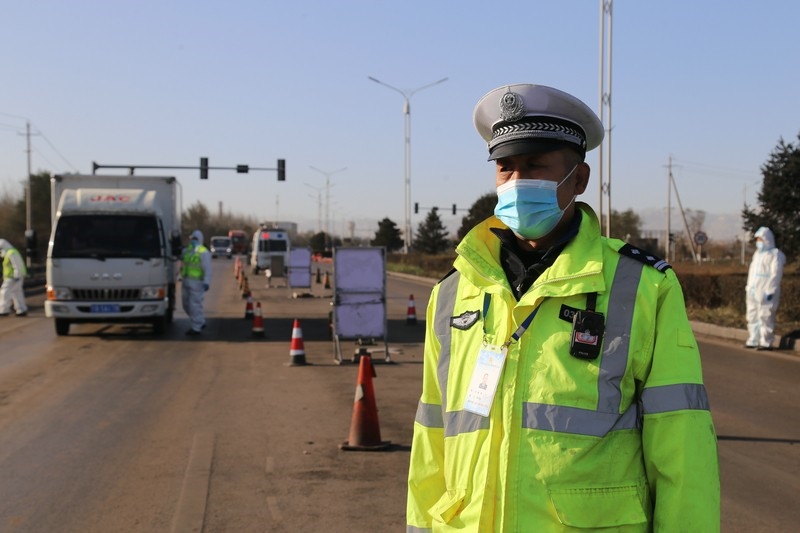 標準的停車手勢,文明的禮貌用語,敬禮,請您出示核酸證明,行程碼……在110國道烏海市烏達區(qū)三道坎疫情防控檢查點,一位兩鬢微白的民警在一眾年輕人中格外顯眼,正在核查進入烏達區(qū)方向車輛司乘人員的健康碼、行程碼及48小時內(nèi)核酸檢測證明,從早上7點50分上崗便冒著寒風(fēng)排查車輛,到下午4點一站就是8個小時,最多的時候,車流量達到2600多輛,勸返車輛30多輛40余人,勸他休息,他卻說:“現(xiàn)在是非常時期,打好疫情攻堅戰(zhàn),需要我們眾志成城,一起努力!”