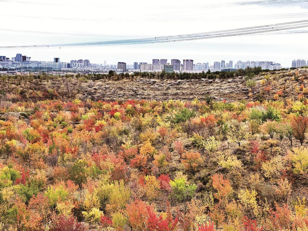 如果說黃河岸邊的秋景是溫柔的,那么甘德爾山的秋景則多了幾分豪邁與壯闊。沿著登山步道向上攀登,山路兩旁的灌木叢已經(jīng)變成了紅色、黃色、橙色,五彩斑斕,層層疊疊,像大自然打翻了調色盤。站在山頂俯瞰,整個烏海市區(qū)盡收眼底,黃河像一條金色的絲帶纏繞在城市邊緣。秋風在耳邊呼嘯,帶著山間的清涼,讓人瞬間忘卻了城市的喧囂與煩惱。