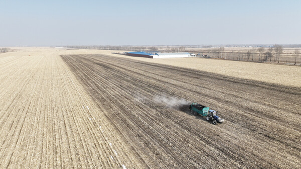 3月8日,農民駕駛農機在內蒙古興安盟扎賚特旗音德爾鎮(zhèn)巨寶村一處農田中拋撒有機肥(無人機照片)。驚蟄節(jié)氣后,內蒙古興安盟扎賚特旗各項備耕工作有序推進。扎賚特旗是我國重要的產(chǎn)糧大縣,2024年糧食總產(chǎn)量達49.5億斤。(新華社記者 貝赫)