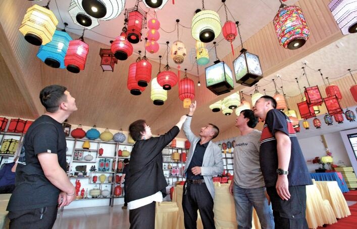 “我們有手工編織的宮燈、紗燈、吊燈等180多種款式的燈籠供消費者選擇?!苯眨灾螀^(qū)級非物質(zhì)文化遺產(chǎn)項目——燈籠編織技藝傳承人杜學(xué)龍給游客介紹自己的產(chǎn)品。