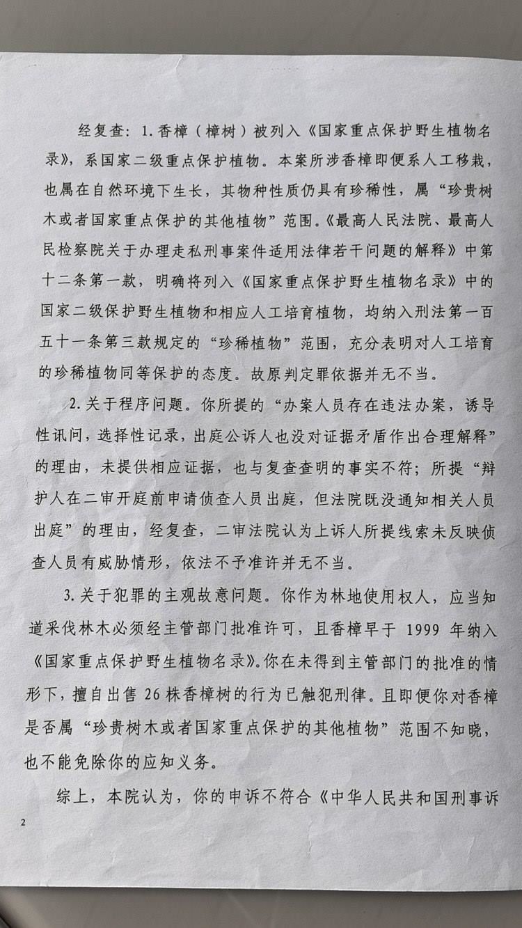 據(jù)悉,馬萬春在2018年7月也通過書面形式,向瀘州市林業(yè)局提出了書面查詢,咨詢了砍伐人工種植香樟樹是否涉及非法出售重點保護植物罪的相關(guān)問題,“瀘州市林業(yè)局也是援引國家林業(yè)局的“林策發(fā)(2013)207號”文件,直接說了可按照一般樹木進行采伐利用。法院和林業(yè)局,到底誰在林業(yè)問題上更專業(yè)?”馬萬春說。