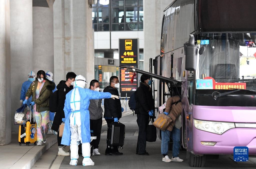 3月5日,中國(guó)公民乘坐臨時(shí)航班抵達(dá)鄭州新鄭國(guó)際機(jī)場(chǎng),準(zhǔn)備上車(chē)前往隔離酒店。當(dāng)日上午9時(shí)46分,第二架接返自烏克蘭撤離中國(guó)公民臨時(shí)航班安全抵達(dá)鄭州。新華社記者 郝源 攝