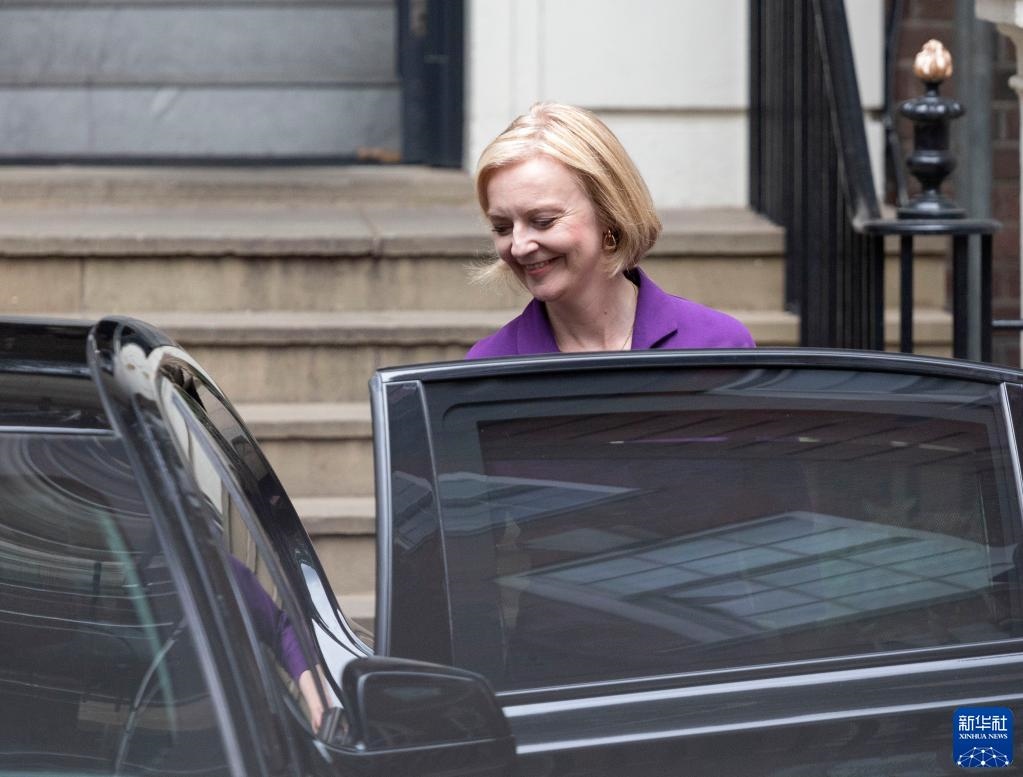 9月5日,在英國倫敦,當選英國保守黨新黨首的伊麗莎白·特拉斯離開保守黨總部。新華社發(fā)