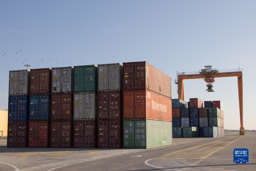 這是10月18日在匈牙利費(fèi)涅什利特凱的東西門場(chǎng)站拍攝的集裝箱和由5G技術(shù)遠(yuǎn)程控制的龍門起重機(jī)。新華社發(fā)(弗爾季·奧蒂洛攝)