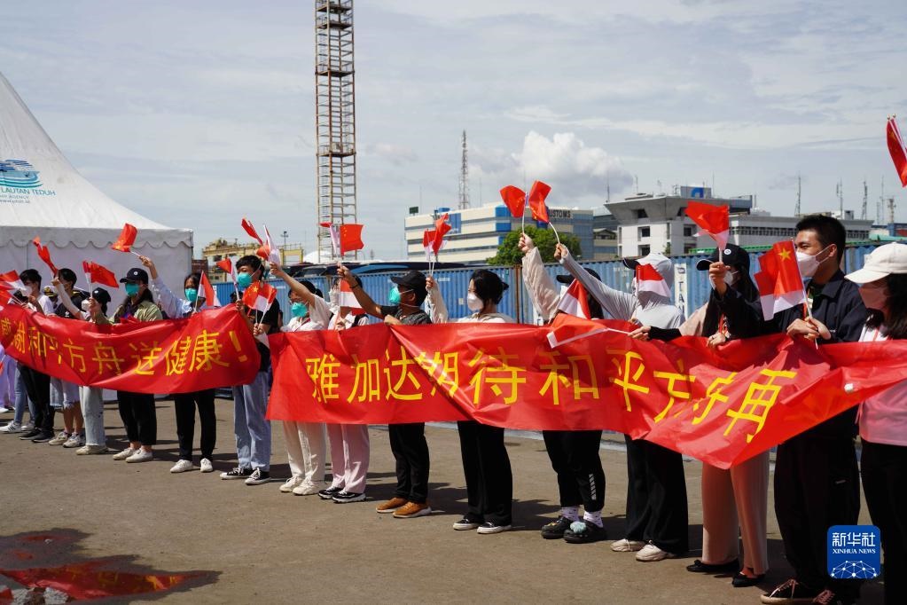 當(dāng)日,印尼海軍和當(dāng)?shù)孛癖?,以及中?guó)駐印尼使館工作人員和中資機(jī)構(gòu)、華僑華人代表等在碼頭送行。離開碼頭后,“和平方舟”號(hào)醫(yī)院船還與印尼海軍“三寶壟”號(hào)醫(yī)院船進(jìn)行了聯(lián)合通信、燈光旗語(yǔ)、編隊(duì)航行等課目演練。