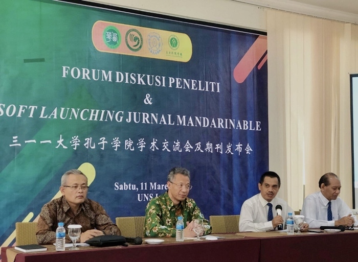 人民網(wǎng)雅加達3月12日電 (記者張杰)11日下午,三一一大學孔子學院學術(shù)期刊《Mandarianable》發(fā)布會及四周年生日會在梭羅隆重舉行。西華大學校長劉樹根、三一一大學學術(shù)事務副校長(尤努斯)Mr.Yunus教授、研究與創(chuàng)新副校長(坤卓落)Mr.Kuncoro教授、合作與信息副校長(夏啟丹)Mr. Sajidan教授、成都市政府代表潘文吉、張友東、羅會成、三一一大學部分院系代表等嘉賓出席了本次發(fā)布會。