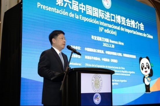 當(dāng)?shù)貢r(shí)間3月30日,第六屆中國(guó)國(guó)際進(jìn)口博覽會(huì)推介會(huì)在阿根廷布宜諾斯艾利斯成功舉辦。本次活動(dòng)由中國(guó)國(guó)際進(jìn)口博覽局、中國(guó)駐阿根廷使館、阿根廷投資促進(jìn)局主辦,阿根廷牛肉協(xié)會(huì)、中國(guó)商會(huì)(阿根廷)協(xié)辦。這是第六屆進(jìn)博會(huì)3月初啟動(dòng)全球推介以來(lái),首次在美洲國(guó)家開(kāi)展推介。