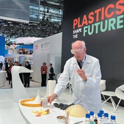 2022年10月20日,在德國杜塞爾多夫塑料展上展示的可再生塑料和回收技術(shù)。本報(bào)記者 李 強(qiáng)攝