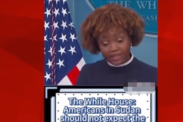 為證明自己的觀點,安柏然在視頻中展示了幾個視頻片段。其中一個片段顯示,一名美媒主持人報道稱,美軍在夜間出動直升機將大約100名美國外交官及其家屬從蘇丹撤出。還有一段視頻顯示,白宮新聞秘書卡里娜·讓-皮埃爾近日在記者會上稱,美國駐蘇丹使館4月16日曾發(fā)布安全警告稱,由于喀土穆安全局勢存在不確定性且機場已關(guān)閉,美國公民此時不應(yīng)期待美國政府協(xié)調(diào)撤僑?!爱?dāng)務(wù)之急是,在蘇丹的美國公民要自行安排,在困難情況下確保自身安全。我們建議美國公民就地避難……”她稱。