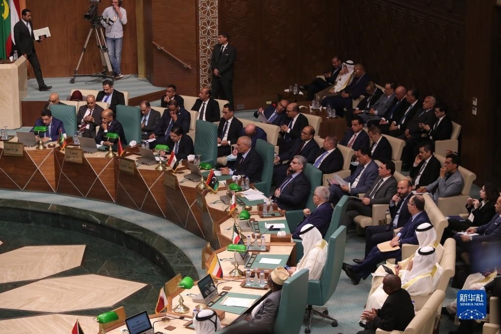 這是5月7日在埃及開羅拍攝的阿拉伯國(guó)家聯(lián)盟外長(zhǎng)級(jí)特別會(huì)議現(xiàn)場(chǎng)。   新華社發(fā)(阿迪勒·艾哈邁德 攝)