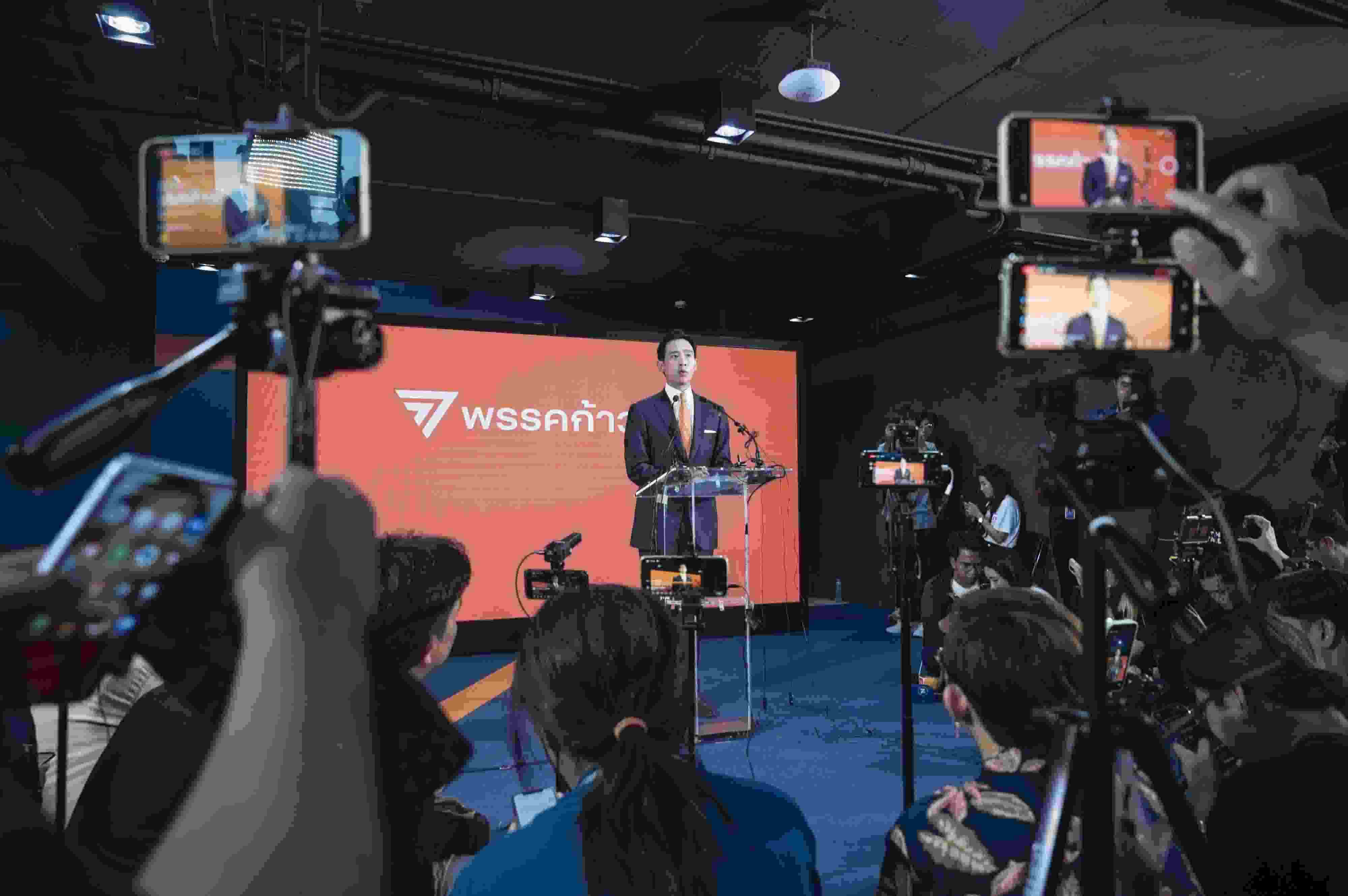 當(dāng)?shù)貢r間2023年5月15日,泰國曼谷,泰國遠進黨黨魁皮塔在該黨總部舉行記者招待會。當(dāng)日中午,在泰國國會下議院選舉中獲得選票數(shù)和下議院席位數(shù)暫時領(lǐng)先的遠進黨黨魁皮塔宣布遠進黨在此次選舉中獲勝,已經(jīng)做好組建新一屆政府的準(zhǔn)備,自己也已準(zhǔn)備好擔(dān)任總理一職。 視覺中國