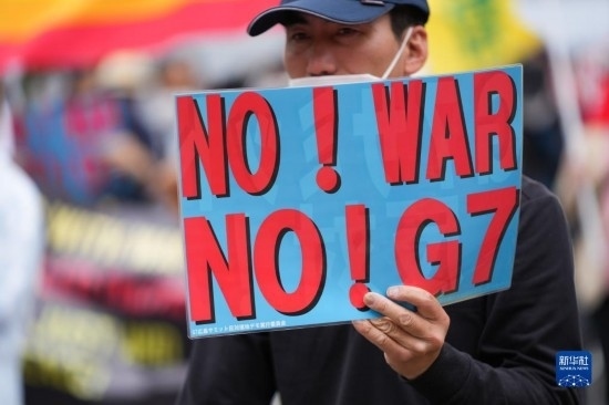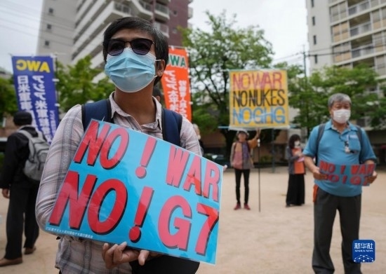 5月19日,民眾在日本廣島參加集會(huì)反對(duì)七國(guó)集團(tuán)峰會(huì)。
