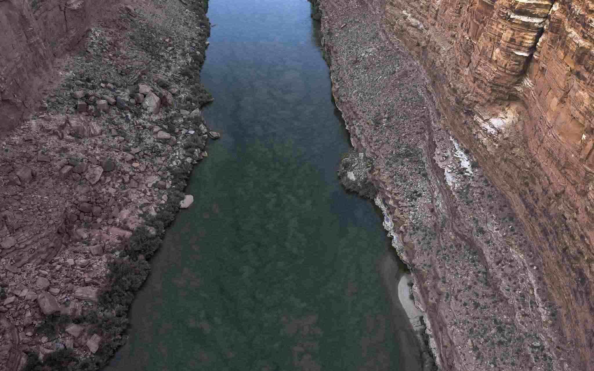 當?shù)貢r間2022年8月31日,美國亞利桑那州,鮑威爾湖下游的科羅拉多河通過大理石峽谷時,沉積物被攪動。