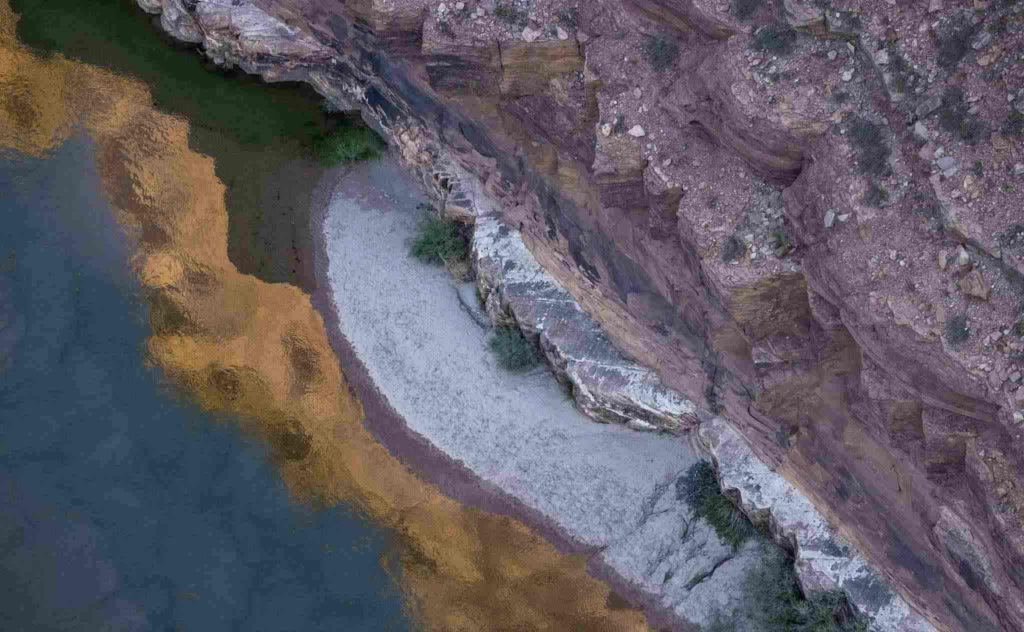 當?shù)貢r間2022年8月31日,美國亞利桑那州大理石峽谷,當沉積物在流經(jīng)鮑威爾湖下游的大理石峽谷時,紅色砂巖懸崖倒映在科羅拉多河中。近幾年,氣候變化導(dǎo)致的干旱使美國第二大水庫鮑威爾湖的水位下降。