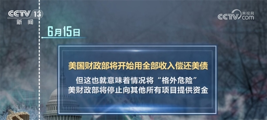 6月15日,美國財政部將開始用全部收入償還美債,但這也就意味著情況將“格外危險”,美財政部將停止向其他所有項目提供資金。