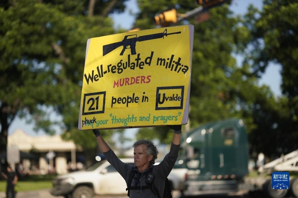 當(dāng)日是美國(guó)尤瓦爾迪大規(guī)模校園槍擊事件一周年。2022年5月24日,19名學(xué)生和2名教師在尤瓦爾迪市羅布小學(xué)槍擊事件中遇難。