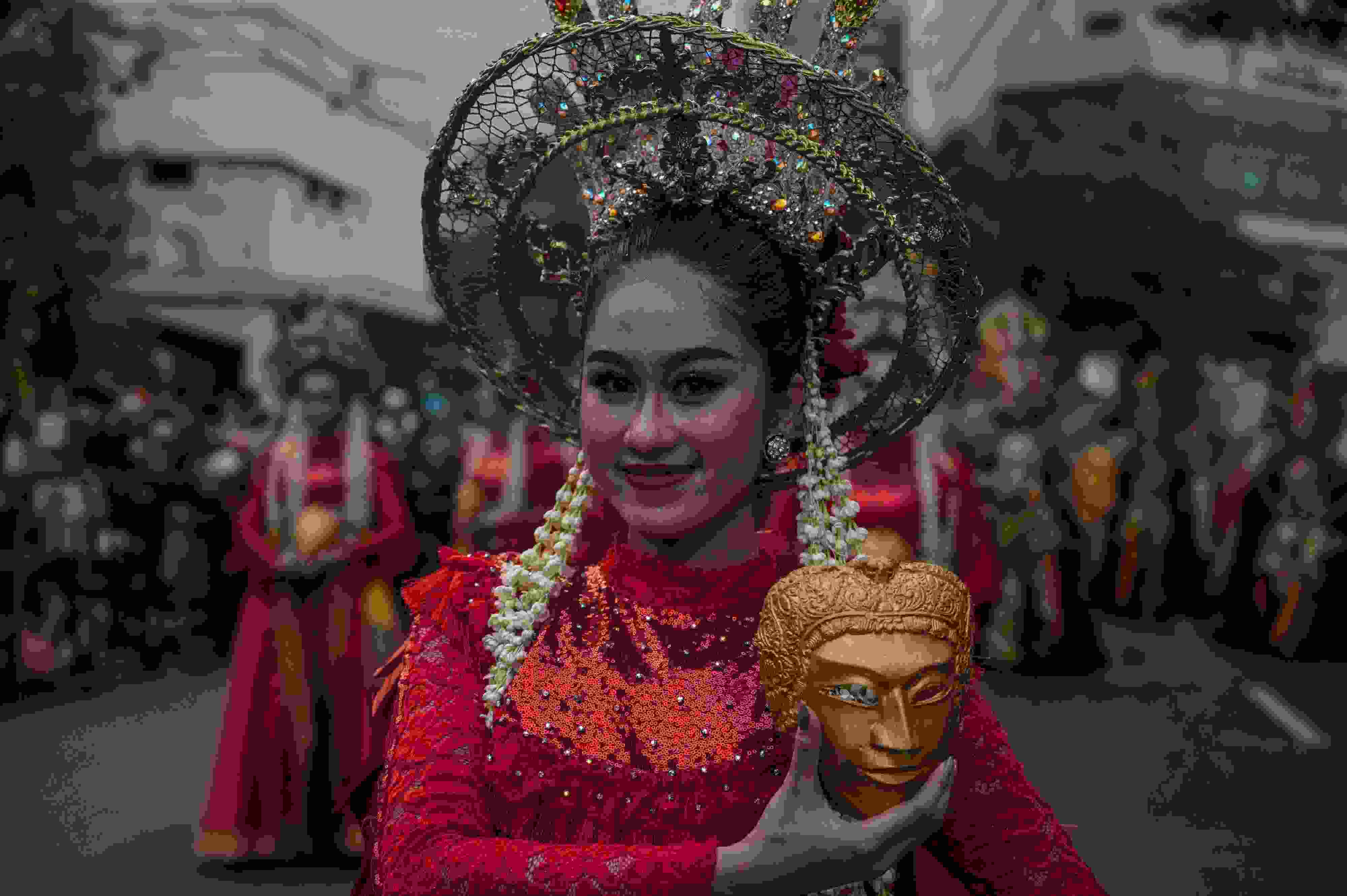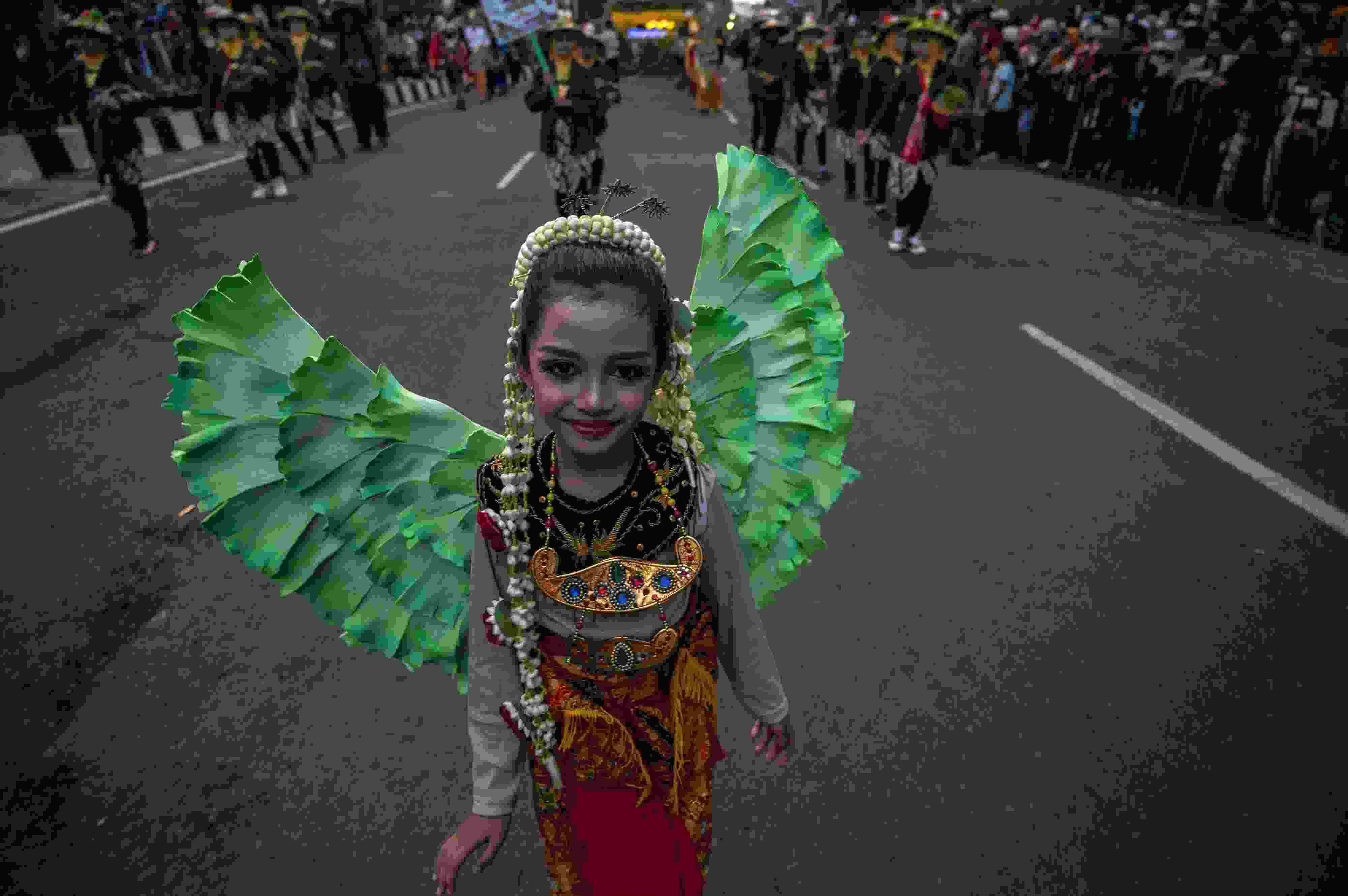 當(dāng)?shù)貢r(shí)間2023年5月27日,印度尼西亞泗水,表演者參加慶祝建城730周年的街頭游行。 視覺(jué)中國(guó)
