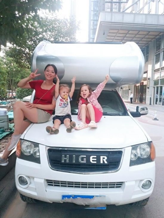 2021年7月,貝特朗一家人在西北環(huán)線自駕游出發(fā)前和租用的房車(chē)合影。(圖片由受訪者提供)
