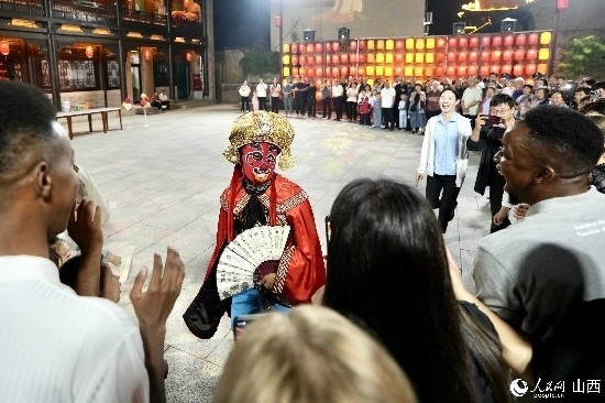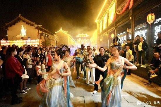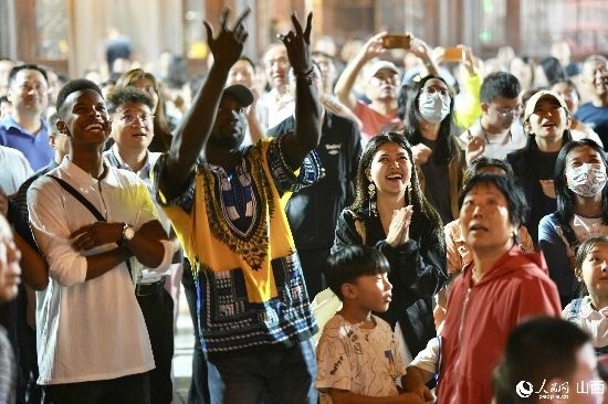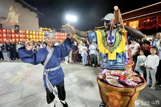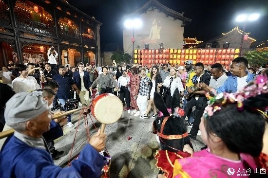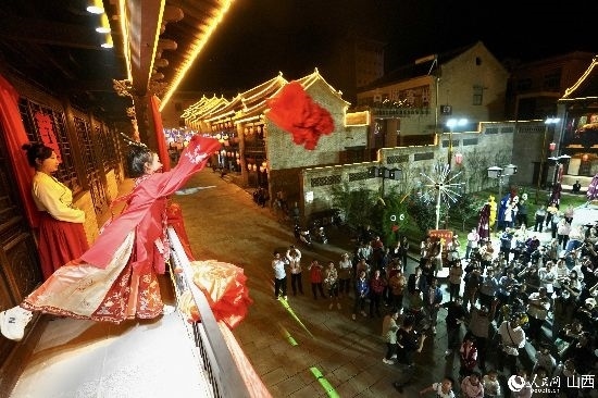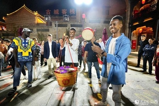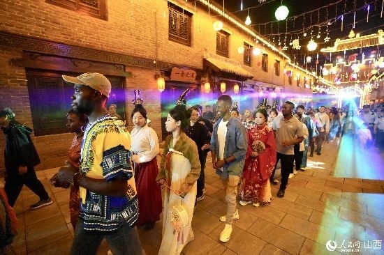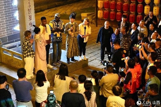 眼花繚亂的民俗表演,沉浸式的古城巡游,絢爛的城樓燈光秀,陶醉的狂歡……9月15日夜晚,在即將結束山西之行的前夜,2023“漢字緣”國際故事大會決賽的選手們夜游山西省晉城市陽城縣郭峪古城,于燈火闌珊處感受古城中的人間煙火。(人民網(wǎng) 盧鵬宇攝)