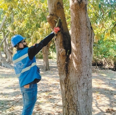 “根據(jù)原定設計方案,管道與森林保護區(qū)交叉區(qū)域長約480米,以征地寬度20米計算,預計交叉區(qū)域面積達到9600平方米。”尼貝管道項目施工協(xié)調員阿拉比·阿多尼斯介紹,項目組通過實地踏勘還發(fā)現(xiàn),交叉區(qū)域內生長著120余株當?shù)靥赜兄参锖?00余株其他珍稀植物,具有極高的科研和生態(tài)保護價值。
