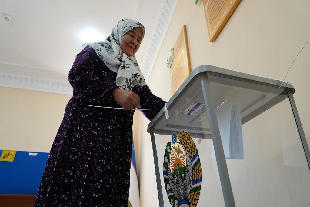 7月9日,選民在烏茲別克斯坦塔什干的一處投票站內(nèi)投票。新華社發(fā)(扎法爾攝)