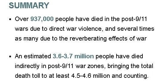 耿直哥查詢公開資料發(fā)現(xiàn),這個450萬的死亡數(shù)字出自布朗大學(xué)沃森國際與公共事務(wù)學(xué)院一項名為“戰(zhàn)爭的代價”的研究項目。該項目對過去22年遭美國戰(zhàn)爭荼毒的阿富汗、伊拉克、利比亞、索馬里、敘利亞,以及巴基斯坦的部分地區(qū)進(jìn)行了調(diào)查,認(rèn)為美國的戰(zhàn)爭直接導(dǎo)致93.7萬人死亡,還有大約360-370萬人間接死亡。