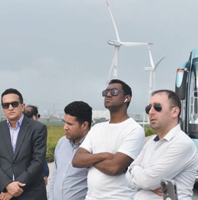 阿拉伯國家外交官在上海電氣集團(tuán)臨港風(fēng)場參觀。方盈眾攝