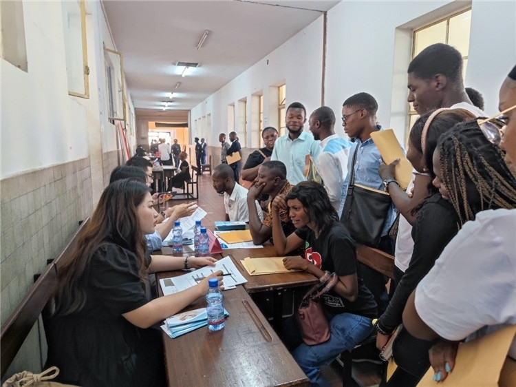 人民網金沙薩7月26日電 (記者閆韞明)日前,剛果(金)外交學院孔子學院在下屬教學點貢貝中學舉辦在剛中國企業(yè)專場招聘會,中鐵七局、中鐵八局、保利長大、華為公司、傳音手機、中海外、洛陽鉬業(yè)等13家中國企業(yè)參加此次活動,總計提供相關工作崗位80余個。來自金沙薩大學、金沙薩土木建筑學院、金沙薩新聞傳媒學院等7所當?shù)馗咝5?00余名學生報名參加此次招聘會。