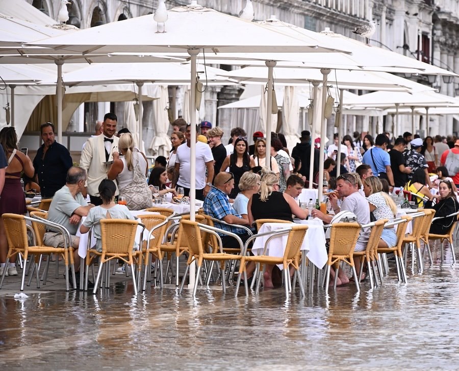 當?shù)貢r間2023年8月4日,意大利威尼斯,游客在圣馬可廣場餐廳。