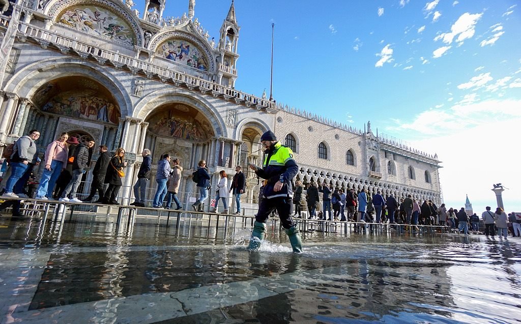 意大利威尼斯近日水位上漲,城內(nèi)部分地區(qū)積水嚴重,游客走在水中游覽觀光。聯(lián)合國教科文組織認為,威尼斯每年接待約2800萬游客,當?shù)夭粩噙M行城市建設,導致過度開發(fā),市中心一些高大建筑影響城市整體形象。此外,全球變暖導致海平面上升,四面環(huán)水的威尼斯非常容易遭受洪水侵襲,但威尼斯當局沒有充足、詳細的應對方案。威尼斯正面臨“不可逆轉(zhuǎn)”的破壞風險,意大利有關(guān)部門“缺乏戰(zhàn)略眼光”,無法解決這座水城目前面臨的種種問題。