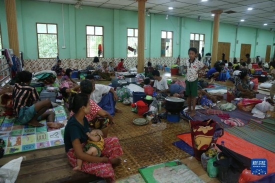 這是8月12日拍攝的緬甸勃固鎮(zhèn)洪災(zāi)區(qū)。新華社發(fā)(苗覺(jué)梭攝)