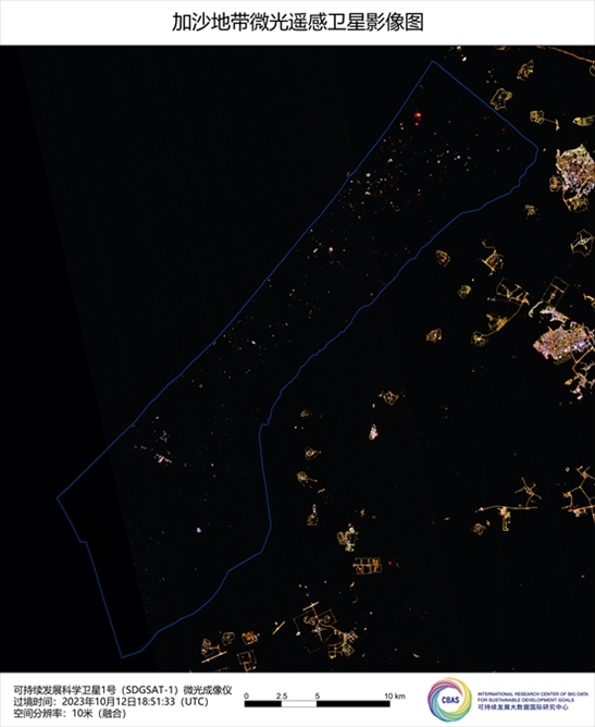 可持續(xù)發(fā)展科學衛(wèi)星1號當?shù)貢r間10月12日晚10時左右獲取的最新衛(wèi)星影像也顯示,在徹底斷電之后,整個加沙地帶的夜晚幾乎完全陷入了黑暗,只有零星的燈火,這也意味著整個加沙地帶陷入了癱瘓,當?shù)孛癖姷幕旧钜褵o法得到保障。